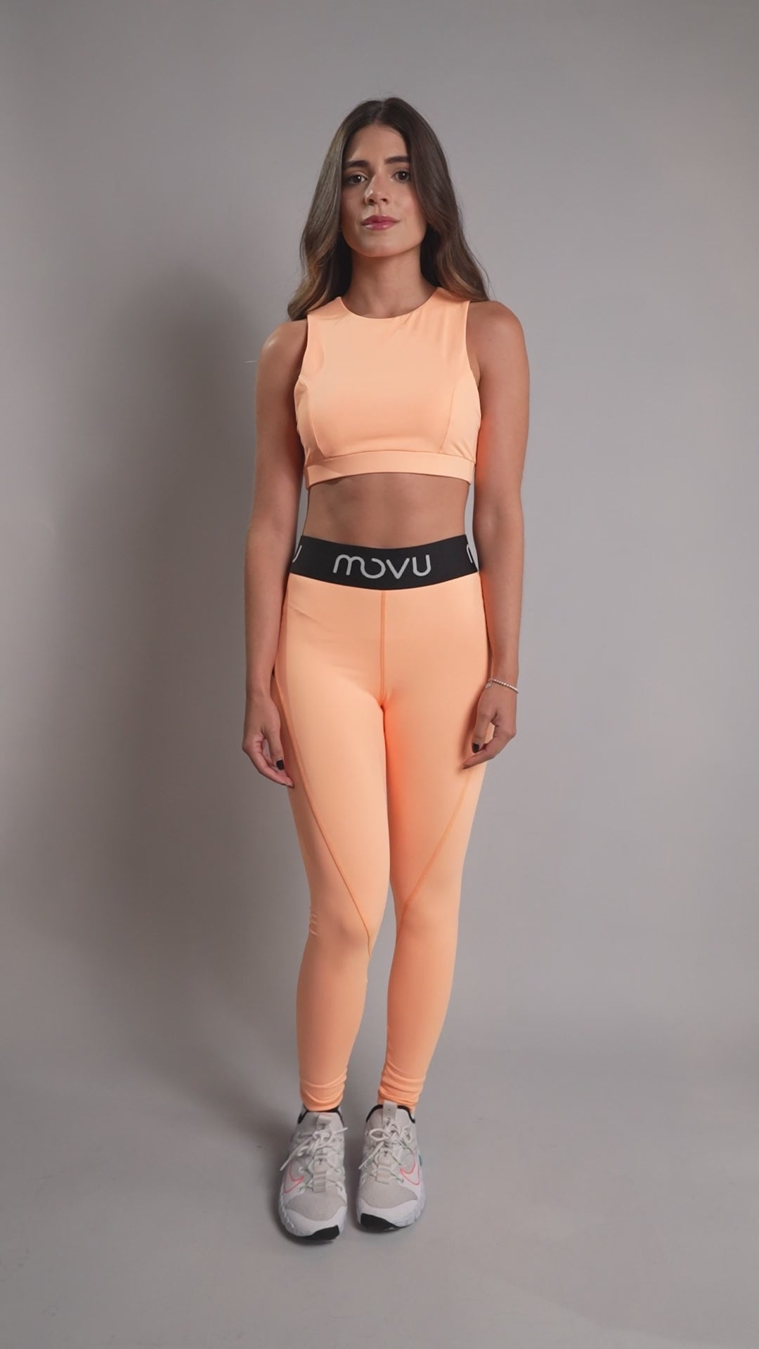 Nuestra modelo de fotos fondo blanco usa una talla Small arriba y abajo. Altura: 176 cm. Busto: 82 cm. Cintura: 61 cm. Caderas: 92 cm.